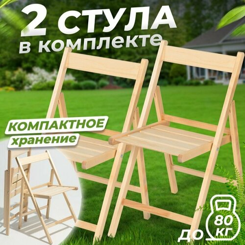 Стул складной деревянный стандарт Leomik 2 шт / Стул с прямой спинкой из дерева кухонный для дома, дачи, балкона, террасы