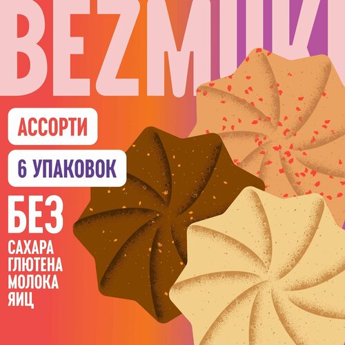 Набор песочного печенья без сахара, яиц, молока со вкусом какао и апельсина, ванили, клубники, 900г, печенье без глютена, лактозы, безмуки, 6 уп.