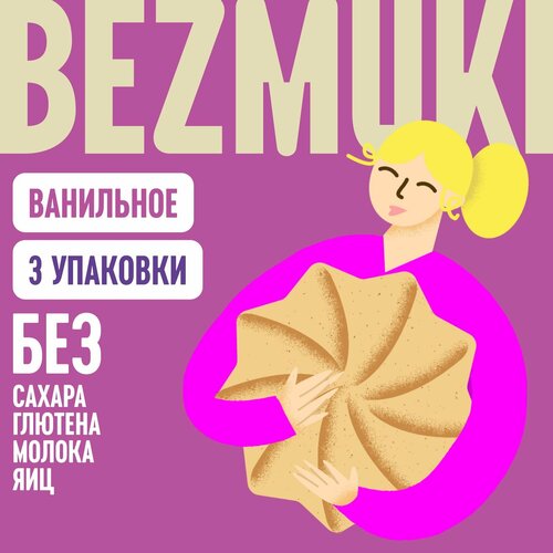 Набор песочного печенья без сахара, яиц и молока со вкусом ванили, 420 грамм, печенье без глютена и лактозы для здорового питания, безмуки, 3 упаковки