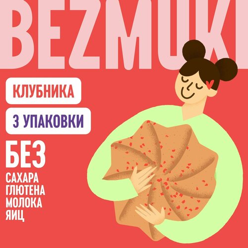 Набор песочного печенья без сахара, яиц и молока со вкусом клубники, 420 грамм, печенье без глютена и лактозы для здорового питания, безмуки, 3 уп.