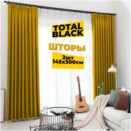 Шторы блэкаут комплект 2шт/145*300см , велюр горчичные