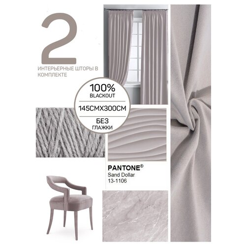 Шторы блэкаут комплект 2шт/145*300см , велюр светлая беж