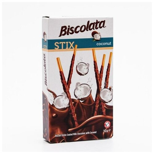 Бисквитные палочки Biscolata в молочном шоколаде с кокосовой стружкой, 32 г./В упаковке шт: 1