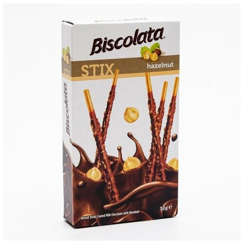 Бисквитные палочки Biscolata Stix Hazelnut в молочном шоколаде с лесным орехом, 32 г./В упаковке шт: 1
