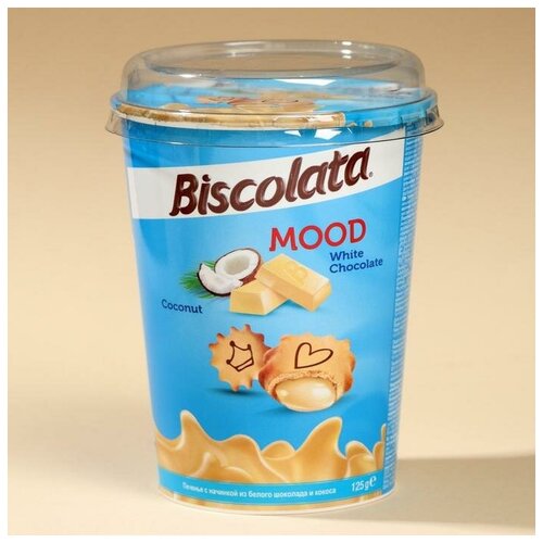 Печенье Biscolata Mood Coconut с белым шоколадом и кокосом, 125 г