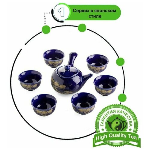 Сервиз для чайной церемонии в японском стиле "Речной простор" - 7 предметов