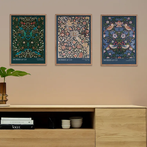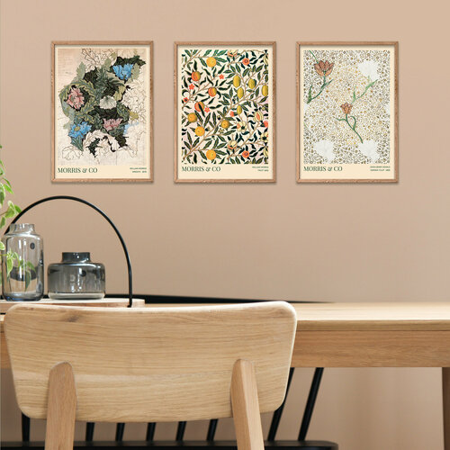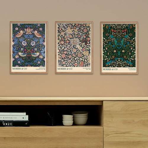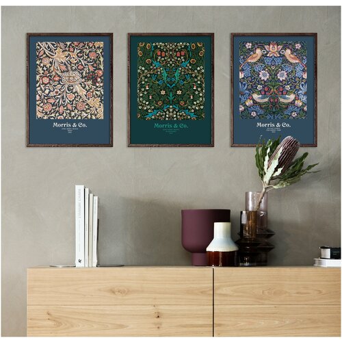 Набор интерьерных постеров на стену 21х30 MORRIS & Co / Strawberry thief, Trent, Blackthorn без рамы / в тубусе