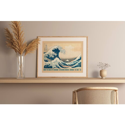 Интерьерный постер на стену 30х40 Японская гравюра, UNDER THE WAVE OFF KANAGAWA, KATSUSHIKA HOKUSAI