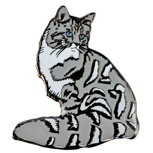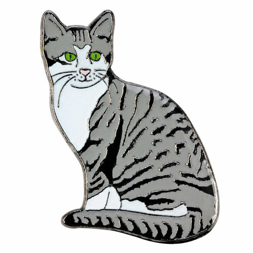 Значок металлический BLUE BUG "Домашняя кошка", бело-серый, 25х19мм, без упаковки (Германия)