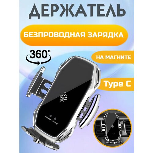 Держатель для телефона автомобильный А5 крепление в авто с беспроводной зарядкой, серебристый