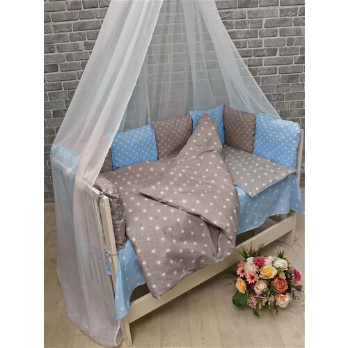 Комплект в детскую кроватку - 12 бортиков и постельное белье/для новорождённых