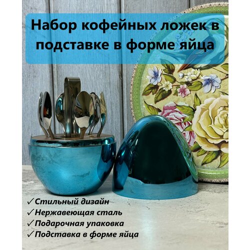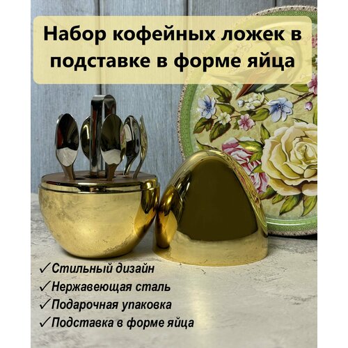 Набор кофейных ложек в форме яйца 6 предметов золото-серебро