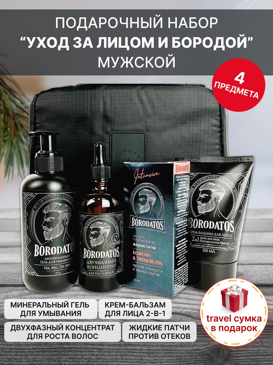 Подарочный набор Borodatos мужской Для лица и бороды средства для очищения и ухода 3563-