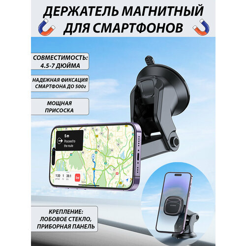Автодержатель магнитный Borofone BH21 с присоской для телефона (Черный) 600001491869