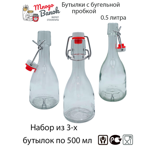 Бутылка Бабл 500мл стеклянная с бугельной пробкой, набор 3 шт