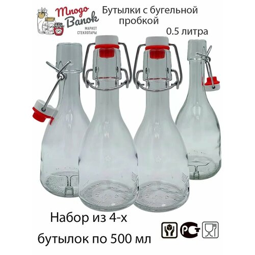 Бутылка Бабл 500мл стеклянная с бугельной пробкой, набор 4 шт