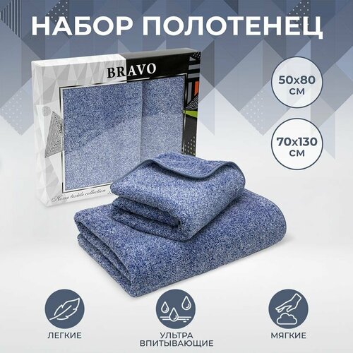 Подарочный набор банных быстросохнущих полотенец Презент из микрофибры 2 шт 50*80+70*130 см, синий