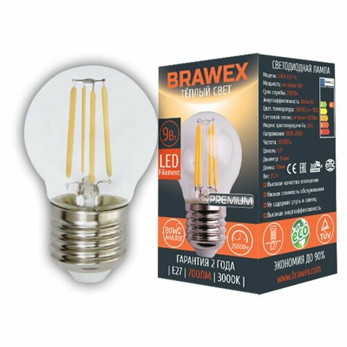 Лампочка Brawex G95F-E27-13N, Теплый белый свет, E27, 13 Вт