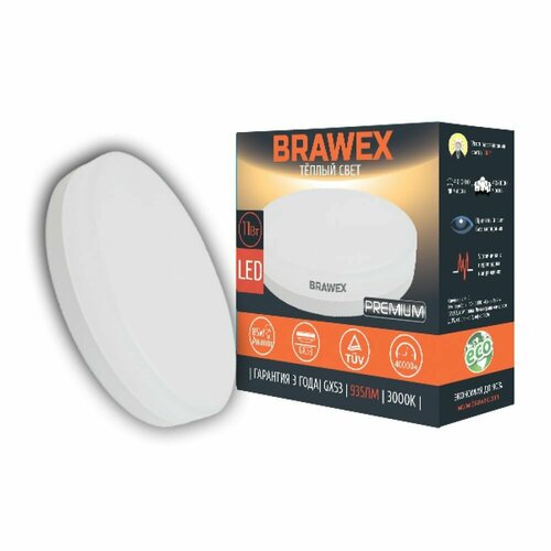 Упаковка светодиодных ламп BRAWEX GX53-11L 11W 3000K GX53 (10шт)