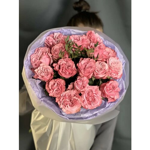 Монобукет из пионовидных роз "Кантри Блюз" 17 шт розовые, 50 см в упаковке 103722932045