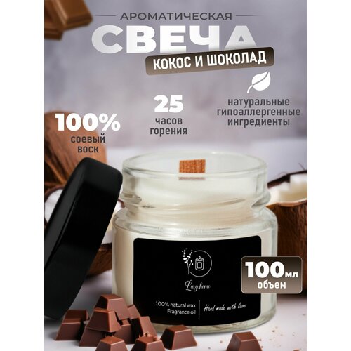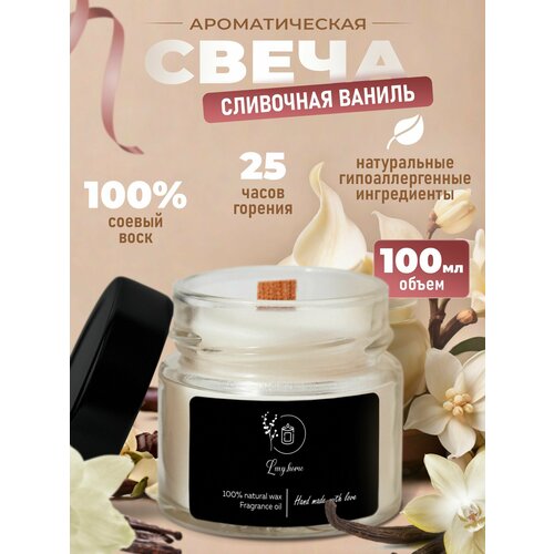 Cвеча ароматическая LUXY_HOME, Арома свеча с деревянным фитилем с ароматом Ванили, Аромасвеча для дома 100мл #bvb_HOME