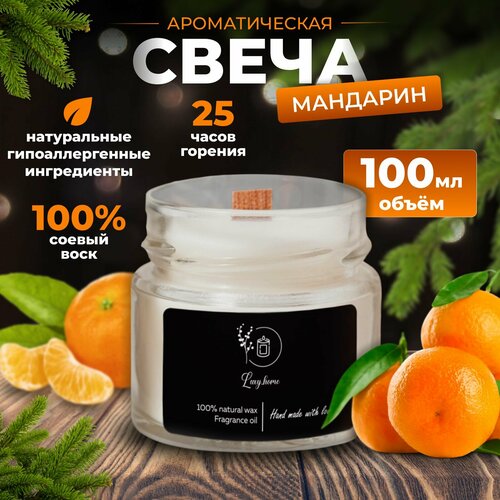 Cвеча ароматическая LUXY_HOME, Арома свеча с деревянным фитилем с ароматом Апельсин Корица, Аромасвеча для дома 100мл #bvb_HOME