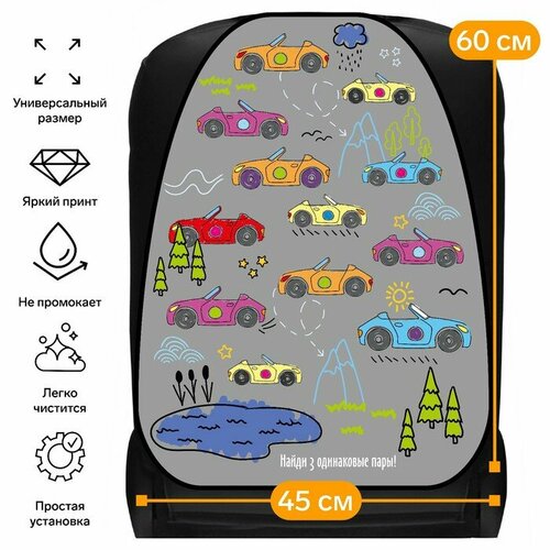 Накидка на сиденье автомобильное Cartage Машинки, ПВХ, 60х45 см, европодвес