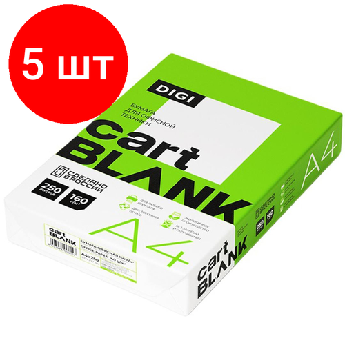 Комплект 5 штук, Бумага для цв. лазер. печ. Cartblank Digi (А4, 160 г/кв. м, 250 л)