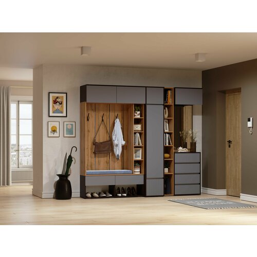 Комплект мебели для прихожей Прага 240х44х217.6 Дуб вотан/Венге/Графит софт