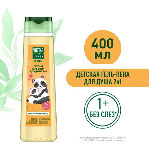 Чистая линия Детская гель-пена для душа 2 В 1 без красителей и парабенов, с ромашкой и пантенолом, 400 мл, 200 г