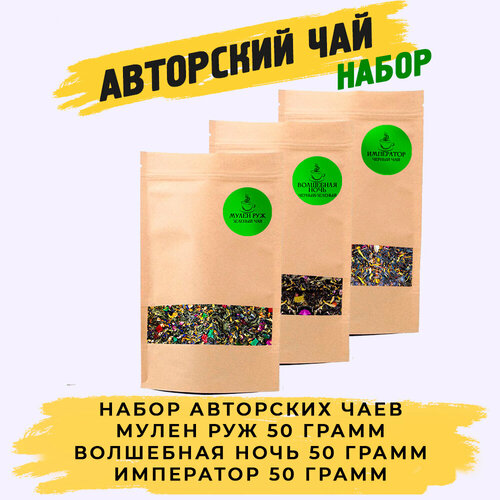 Набор чая. 3*50 грамм. Черный чай, зеленый чай, черно-зеленый чай. Авторские чаи. Мулен Руж, Император, Волшебная ночь.
