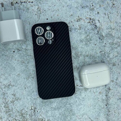 Чехол для iPhone 13 Pro Черный Kevlar защитой камеры Карбон