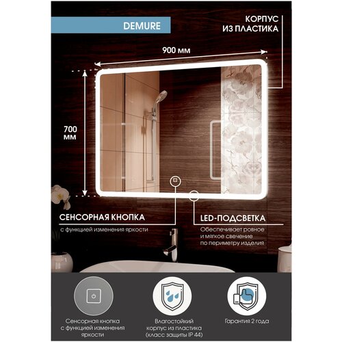 Зеркало с подсветкой и сенсором для ванной комнаты Continent "Demure Led" 900х700