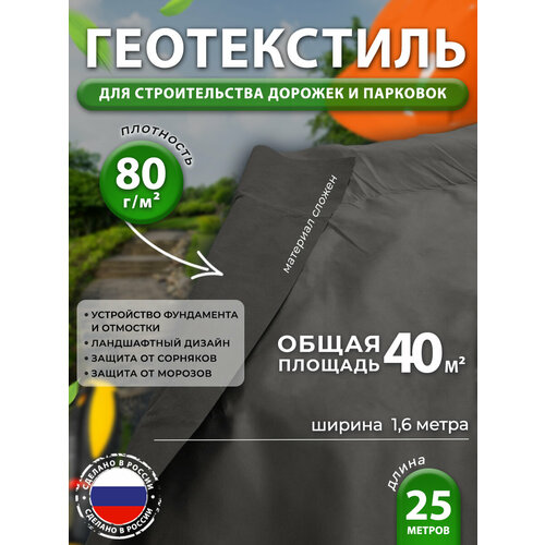 Геотекстиль 80 для дорожек на даче, черный, рулон