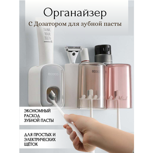 Дозатор - пресс для зубной пасты / органайзер для зубных щёток / серый