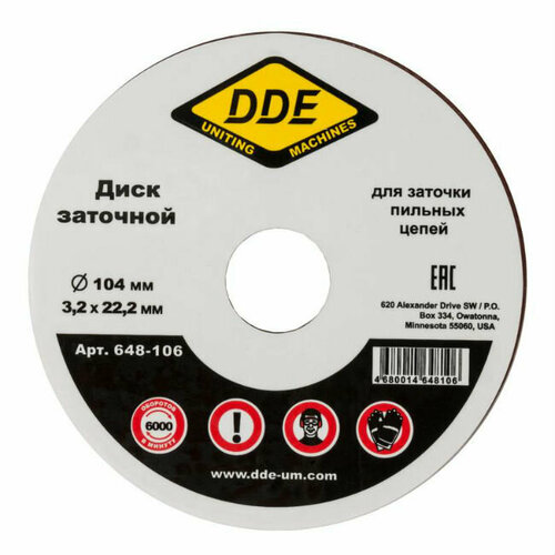 Диск абразивный точильный DDE 104х4,5х22,2 мм для цепи 3/8" .404"