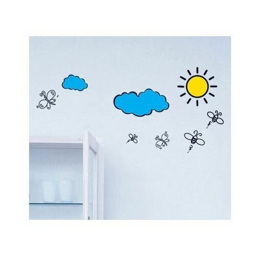 Интерьерная наклейка Солнечный день облака солнце, пчёлки размер на стене 55 см. на 75 см.