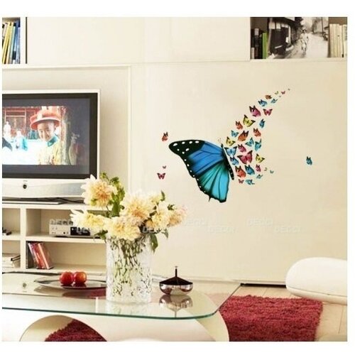 Наклейка на стену, мебель синие бабочки Размер композиции на стене 56*82 см. 40 бабочек разного размера.