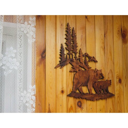 Панно ДекорКоми из дерева на стену Медведи (65х75см)