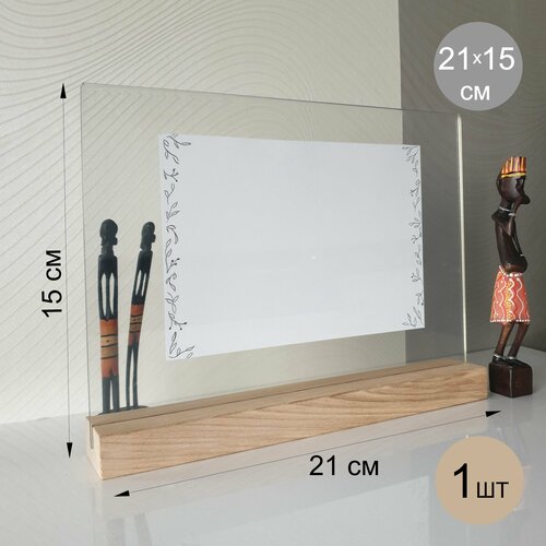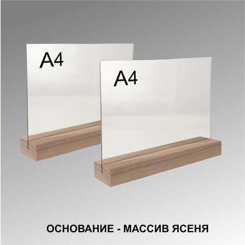 Менюхолдер А4 горизонтальный на деревянном основании / комплект 2 шт / Подставка настольная горизонтальная для рекламных материалов А4