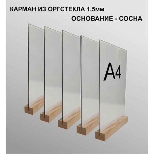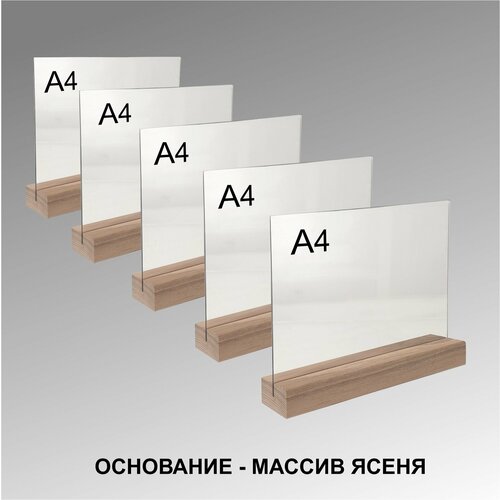 Менюхолдер А4 на деревянном основании комплект - 5 штук / Подставка под меню А4 настольная вертикальная двухсторонняя для рекламных материалов