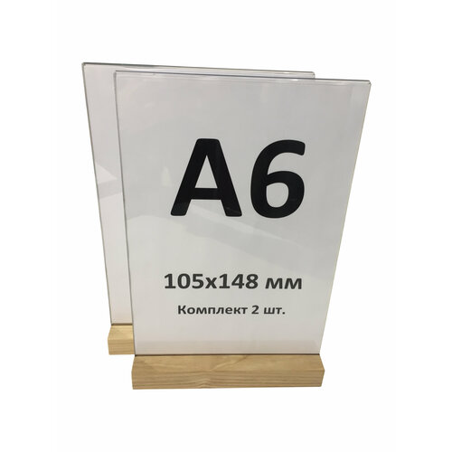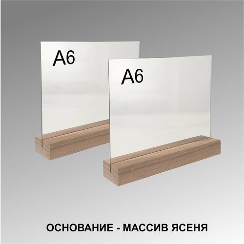 Менюхолдер А6 горизонтальный на деревянном основании / комплект 2 шт / Подставка настольная горизонтальная для рекламных материалов А6