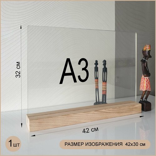 Менюхолдер А4 горизонтальный на деревянном основании / комплект 3 шт / Подставка настольная горизонтальная для рекламных материалов А4