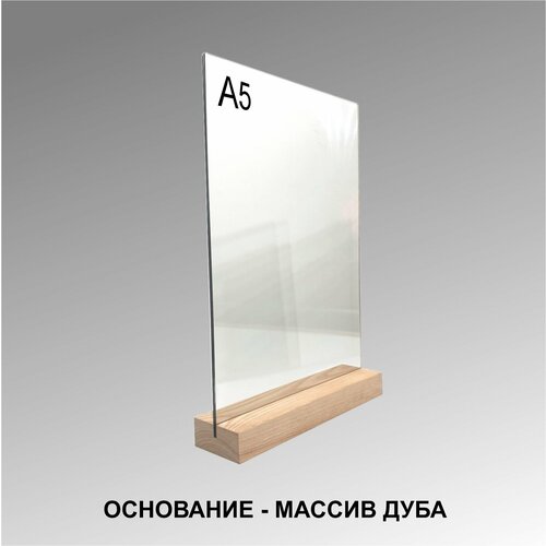 Менюхолдер А5 на деревянном основании (ДУБ) / Подставка под меню настольная вертикальная для рекламных материалов