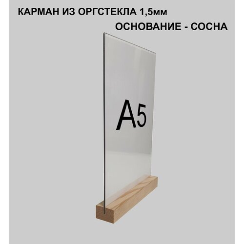 Менюхолдер А5 на деревянном основании , комплект 5 штук / Подставка под меню настольная вертикальная двухсторонняя для рекламных материалов