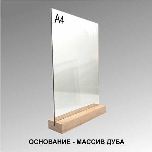 Менюхолдер А4 на деревянном основании (ДУБ) / Подставка под меню настольная вертикальная для рекламных материалов