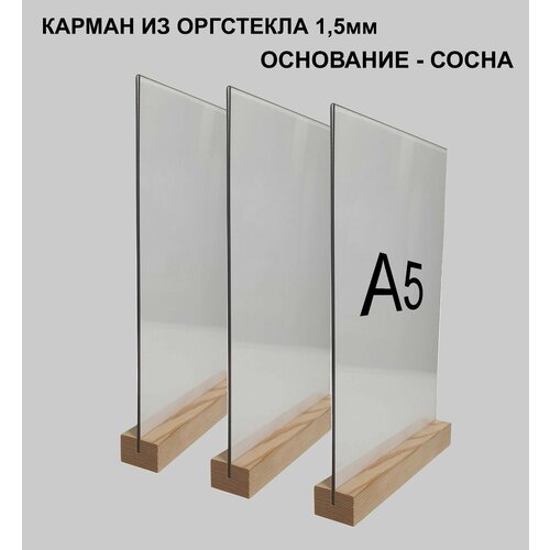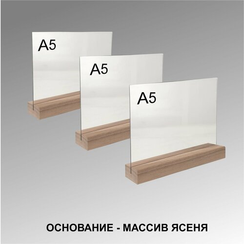 Менюхолдер А5 на деревянном основании , комплект 3 штуки / Подставка под меню настольная вертикальная двухсторонняя для рекламных материалов