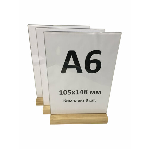Менюхолдер А6 на деревянном основании, комплект 3 штуки / Подставка под меню, рекламные материалы, вертикальная настольная