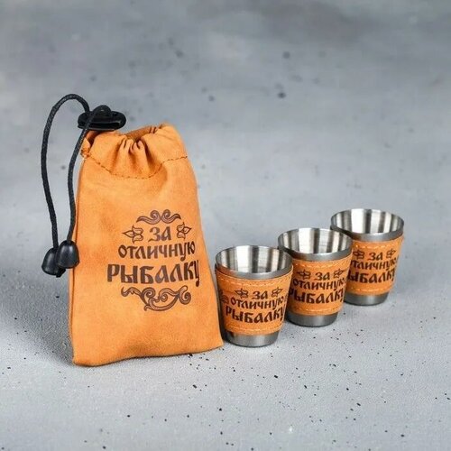 Набор стопок в мешке, 30 мл, "За отличную рыбалку", 3 шт