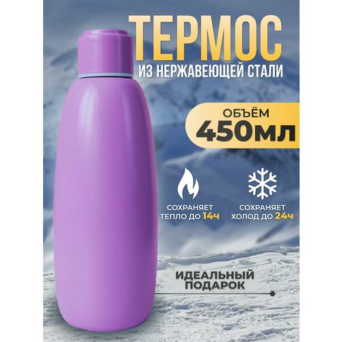 Термос с крышкой для кофе, чая 450 ml Лиловый